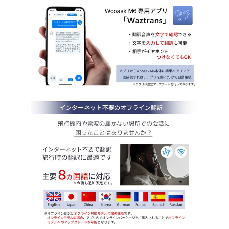 Wooask M6 127 Languages Translator, Interpreter, Earphones, Earphones, Online Version, AI Translator, High Precision, Calls, Music Playback, Bluetooth, Handsfree, English, Chinese, French, Italian,