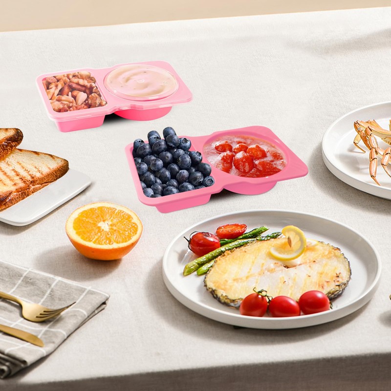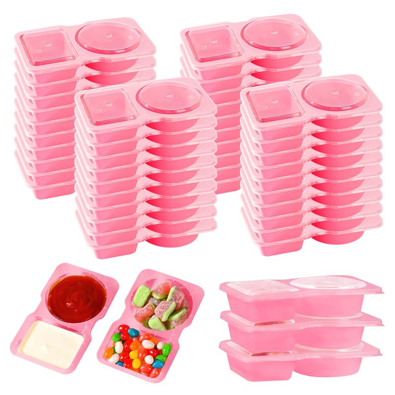 Woobroo 40 Pack Double Compartment Condiment Containers Reusable Snack Containers With Lids - Leakproof Bento Box Style Snack Pots With Compartments For Portion Control(Pink)