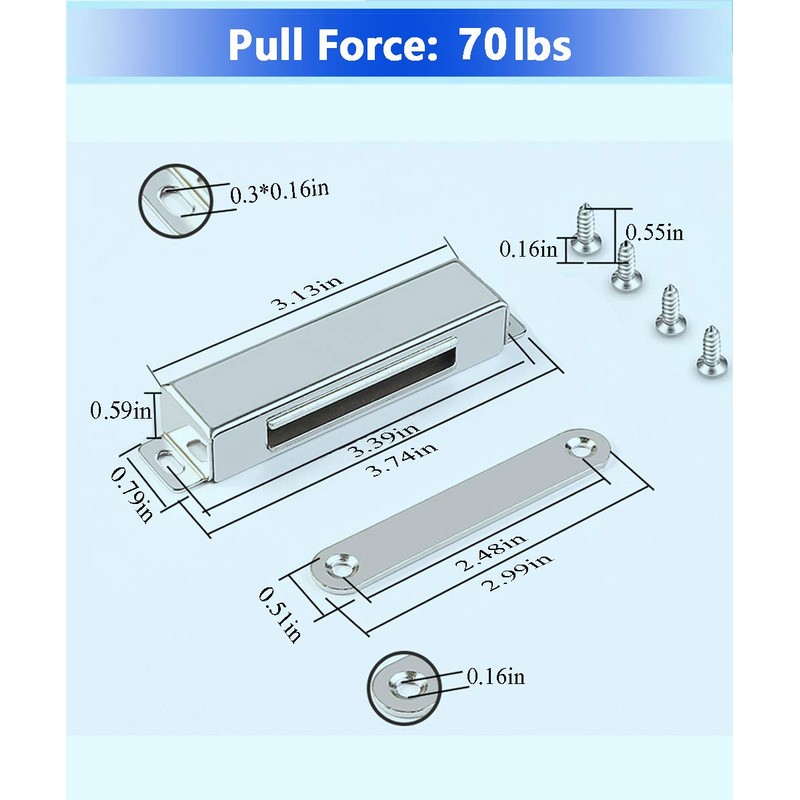 - 【70lb Pull Force High Magnetic】Secure closure rated for up to 70 lbs. of pull strength. Super strong magnet and high quality steel strike plate keeps doors securely closed.