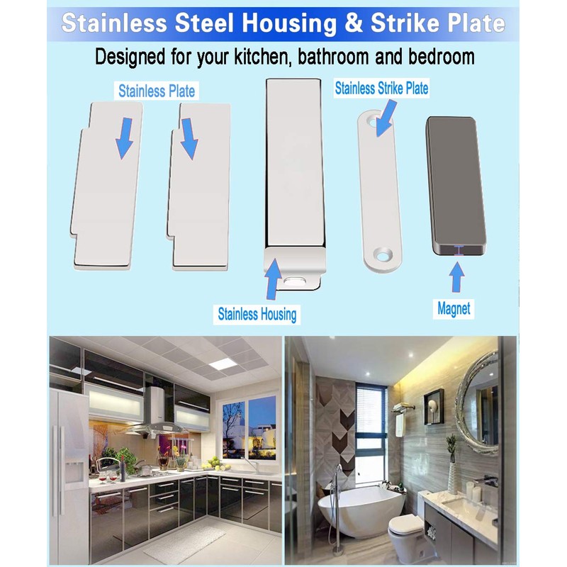 - 【All Metal High Magnetic Catch】Made with a powerful magnet and stainless steel housing. Keep your pets or toddlers from opening the cabinet doors or drawers. Add additional safety to your home.