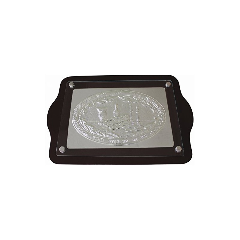 Wood and Silver Plated Rectangular Challah Board with Glass Protector