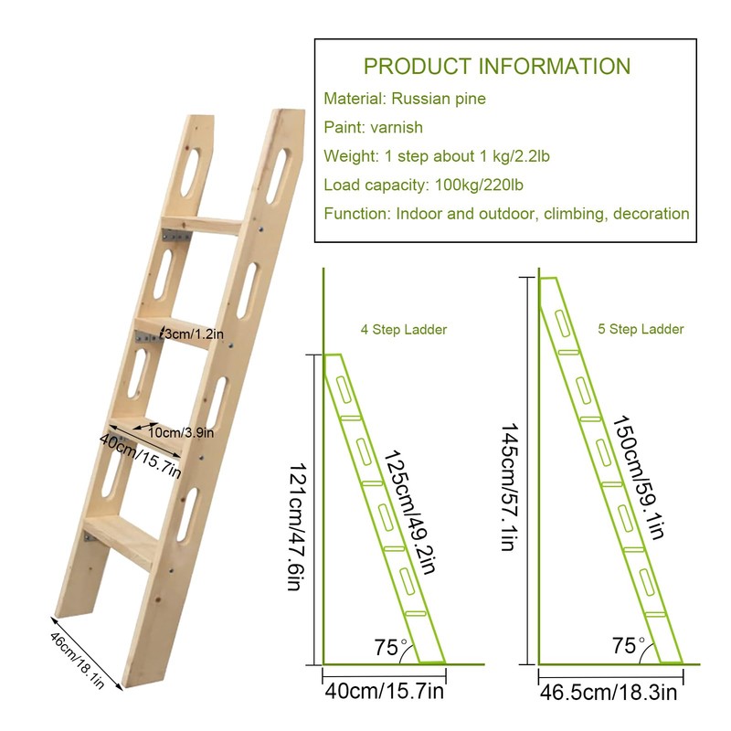 • FLEXIBLE WORK: With more flexibility, you can use tools such as a saw to modify the wooden bunk ladder to fit different sizes of bunk beds or furniture, as a replacement ladder. It's for home bunk bed RV dorm bedroom apartment hotel