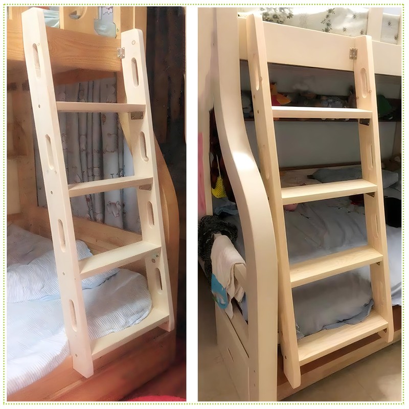 5. Easy to Store: When not in use, the wooden bunk bed ladder can be easily stored away,taking up little space. This makes it convenient to keep at home or transport to different job sites. In addition to storing it in the warehouse, when you don't use it, you can wipe it down and use it as a wooden decorative ladder to lean against a wall for arranging and organizing clothes or other small items.