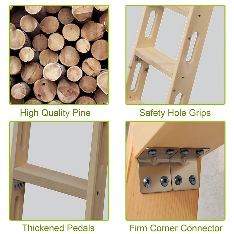 1. High-Standard Materials: The bunk bed ladder wide step is constructed from high-grade pine, ensuring durability and longevity. The natural wood grain adds a touch of attraction and ensures that each ladder is unique.