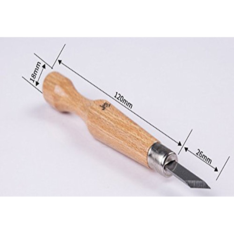 12 pcs Carving Tools include: Deep gouge, medium gouge, shallow gouge, narrow straight chisel, wide straight chisel, rounded chisel, 4 angled knives/chisels, parting tool, pinpoint tool