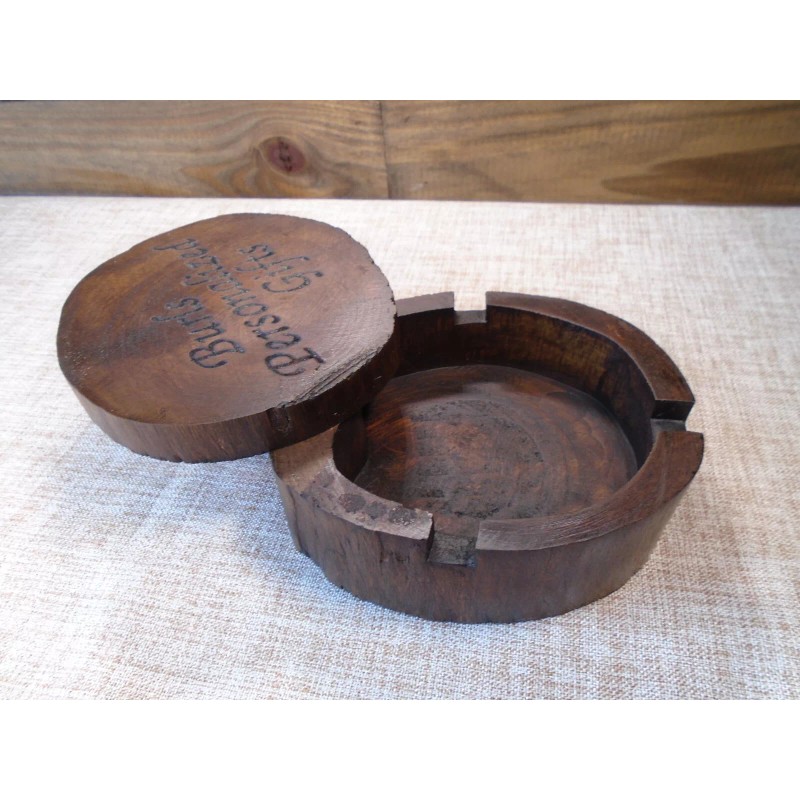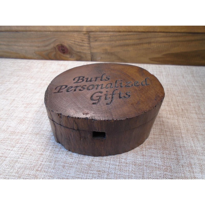 Personalized walnut wood ashtray or stash box with custom laser engraved swivel top makes for the perfect gift!