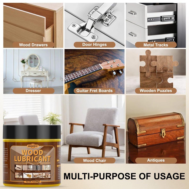 - Multi-purpose lubricant: Our wood lubricant is versatile and can be used on drawers, door hinges, slides, tracks, and other moving parts, as well as windows, dressing tables, guitar fingerboards, lounge chairs, wooden puzzles, and even wooden models. It allows your wooden furniture and fixtures to enjoy smoother, quieter and more efficient sliding