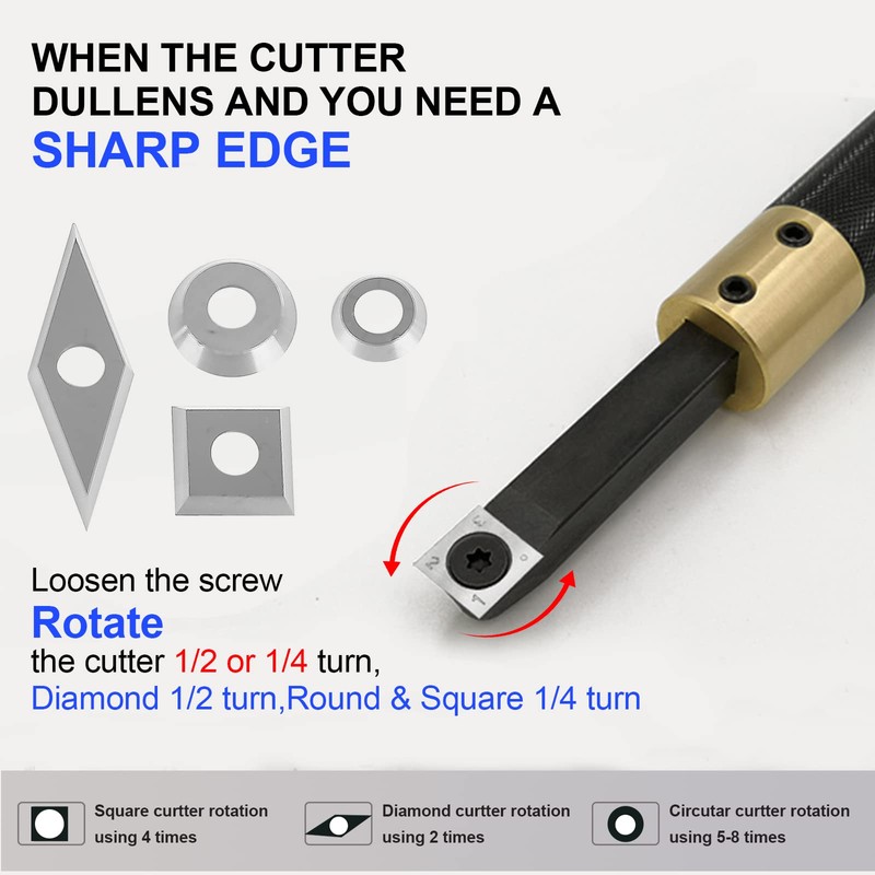 Wood Turning Tools, Turning Tool Set, 12 Pieces, Reversible Plates Carbide, Diamond Head Lathe Tools, Turning Steel Lathe Accessories, Turning Chisel Rotary Finisher Tool, Woodworking Set of Four with