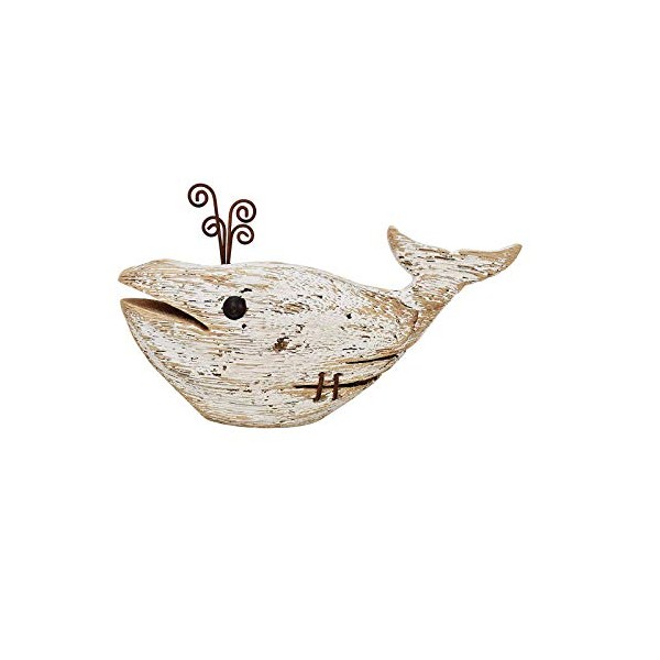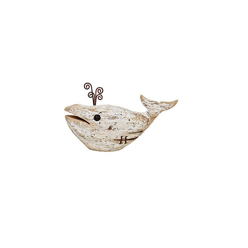 Wood Whale Statue Nautical Tabletop Decor Rustic Whale Animal Figurine Distressed Wooden Whale Sculpture Fun Beach Ocean Decor (1, 4.72" H)