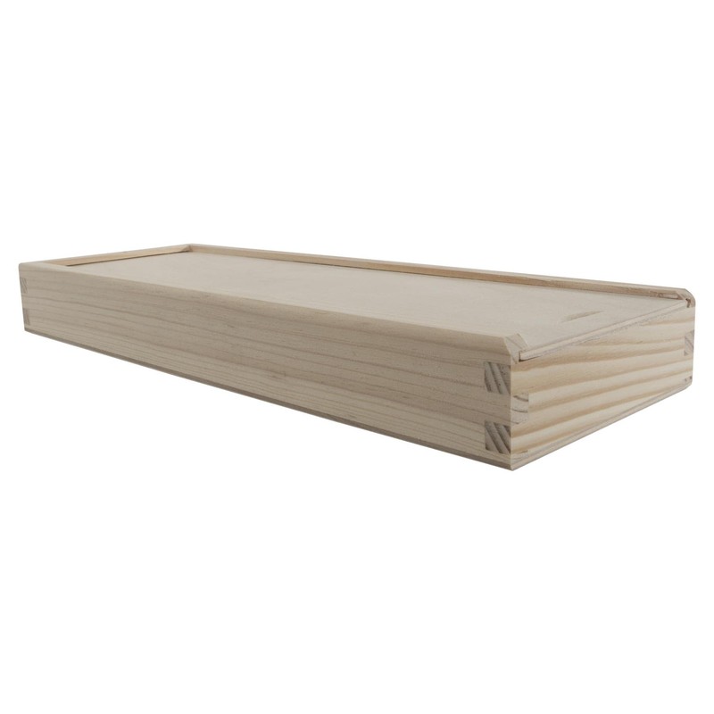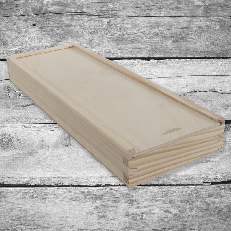 WooDeeDoo Shallow Pencil Box | 1 Pc. | Wooden Pen Brush Crayons Sliding Lid Holder Case | 30.5 x 10.5 x 3.5 cm | Desktop Storage Gift Box Tidy Organiser School Office Stationery | Unpainted Wood