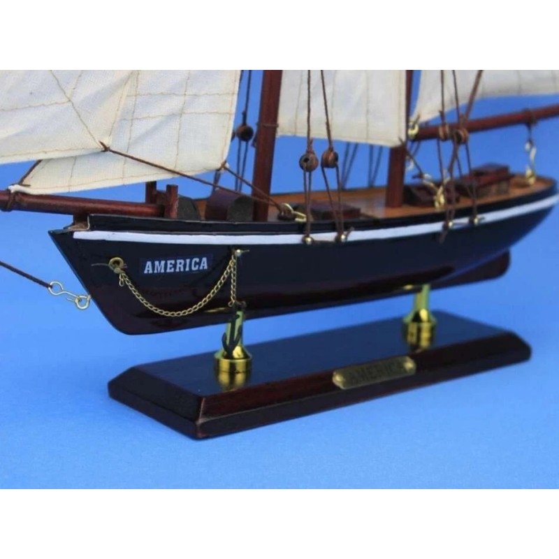 The namesake of the Americas Cup, and the first yacht to win the legendary race, this fabulous model sits perfectly and proudly atop any desk or above the mantel. With the nautical flair of the worlds oldest sailing competition, your home or office will enjoy the charming warmth of this historic sailing décor.