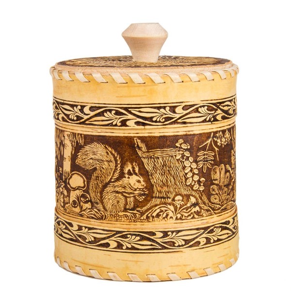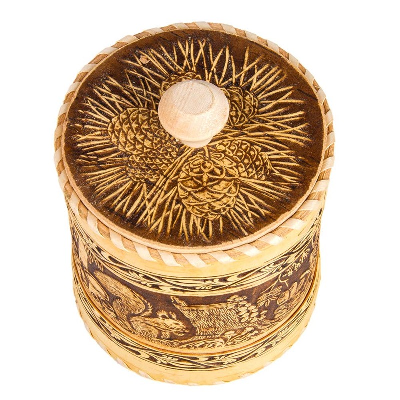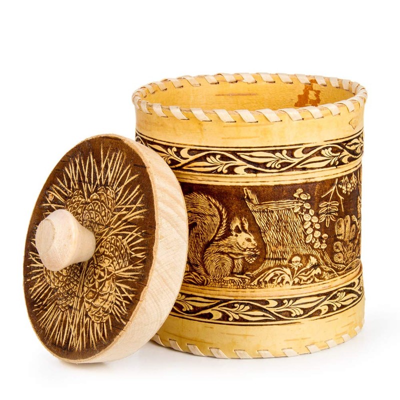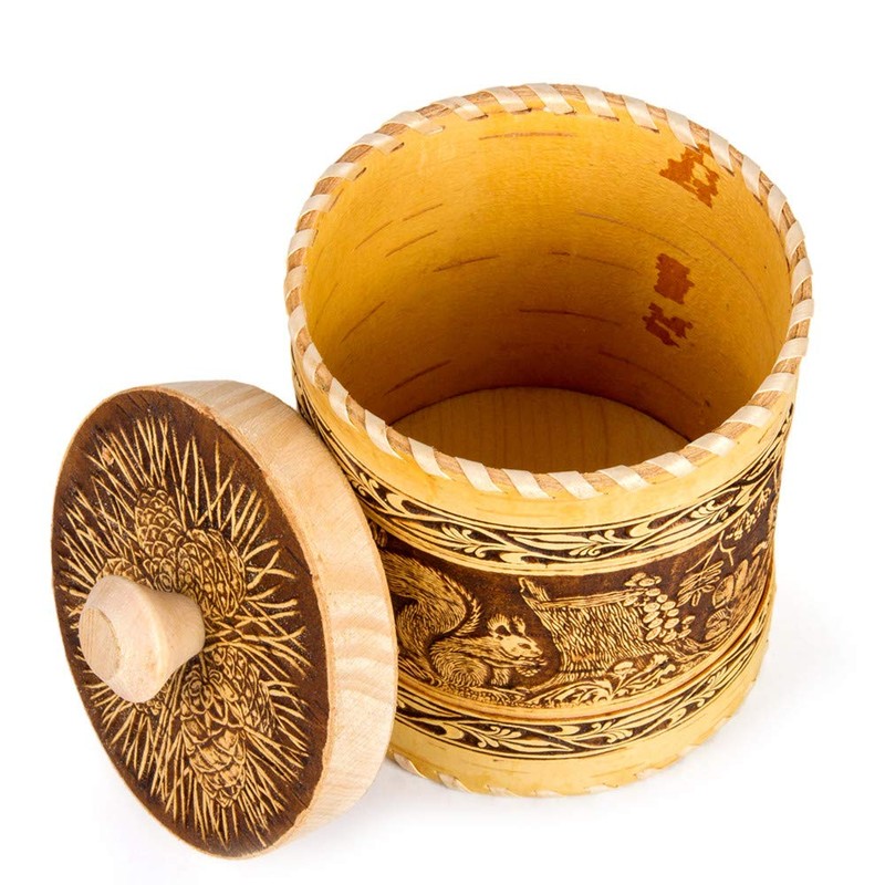 Wooden Container Kitchen Container Squirrels Design Birch Bark Container 5.1-...