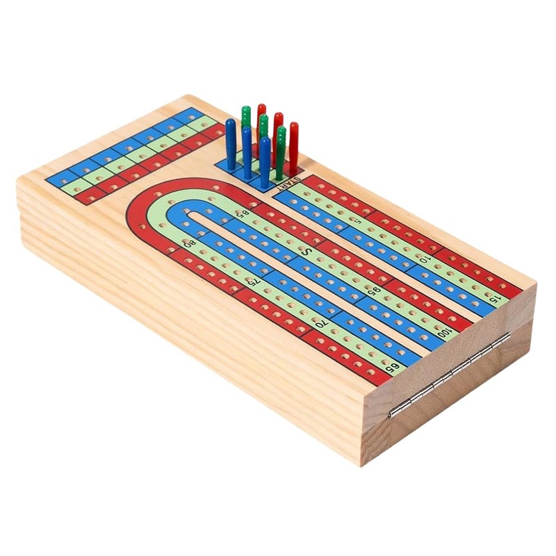 - WOODEN CRIBBAGE BOARD GAME SET : Traditional 3-track cribbage board made from natural wood with colourful scoring lanes – perfect for family game nights or learning the ropes!