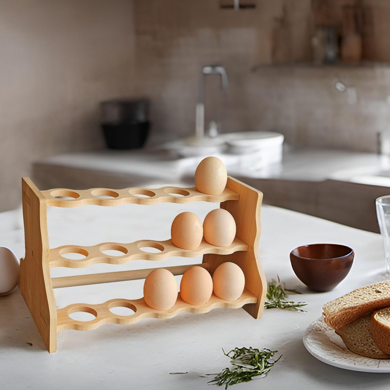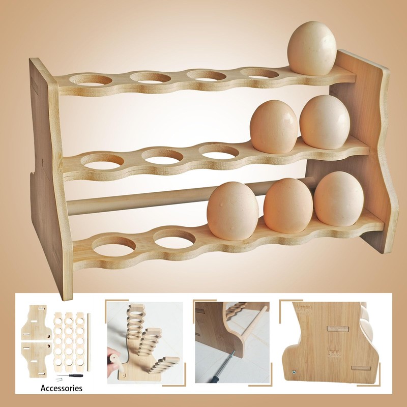 - The wooden egg holder countertop, crafted from bamboo wood . This egg holder countertop serves as a fresh egg holder countertop, providing a clean and safe space for storing eggs. The egg rack or egg stand, is designed to keep eggs organized and accessible, making egg storage for fresh eggs an essential egg storage solution for fresh eggs.