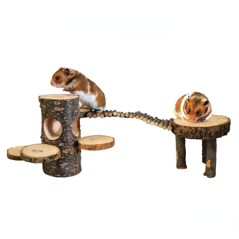 Wooden Hamster Platform Toy, Safe Wood Chinchilla Activity Playground Stand Ladder for Pet Guinea Pig Climbing Bridge Hamster Hideout