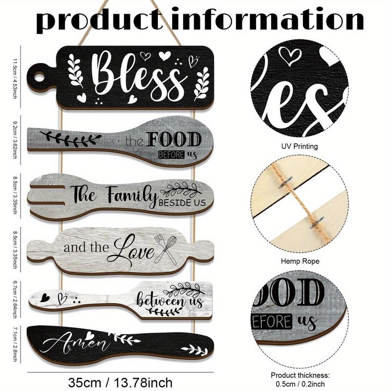 Wooden Kitchen Wall Decor, 1 Count Farmhouse Kitchen Wall Sign with Rope, Housewarming Gift, Home Wall Hanging Decor