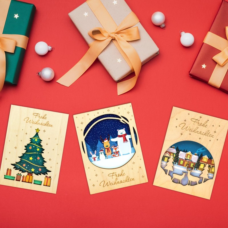 Wooden Love Greeting Cards | Express Your Heartfelt Affection | For Him/Her | Family | Friends (Christmas Card 2)