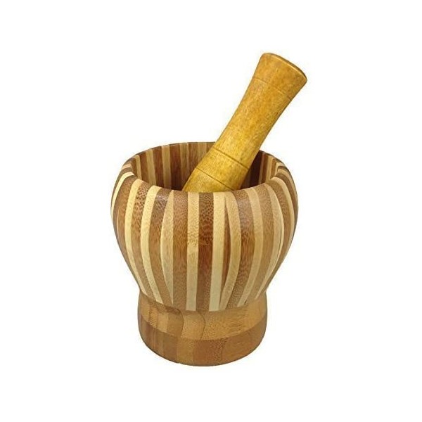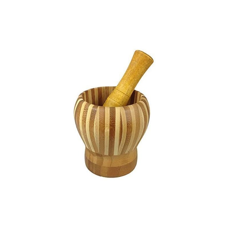Wooden Mortar with Pestle Wide Stripes