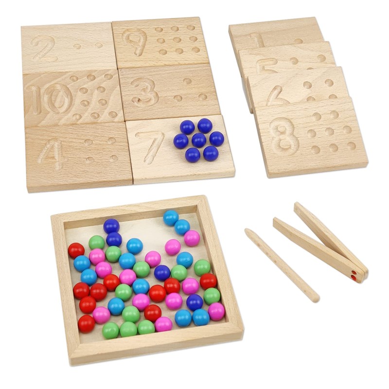 - 【Wooden Number Tracing Board】 The math learning set includes 10 number tracing boards from 1 to 10, 55 wooden balls as counters, a storage tray for holding small balls, a wooden pen and a tweezers. An educational toy to help young children practice number recognition, how to form numbers by themselves. Great for early cognitive development.