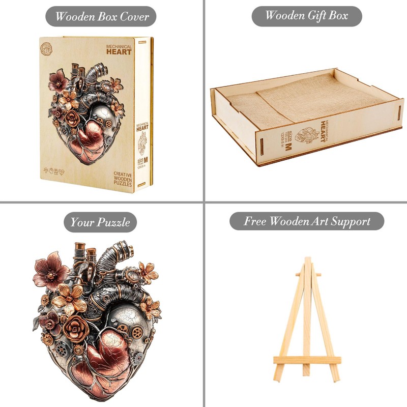 Wooden Puzzle Adults and Children, Mechanical Hear Irregular Unique Puzzle, Wooden Puzzle Adults with Wooden Gift Box (M-155 Pieces)