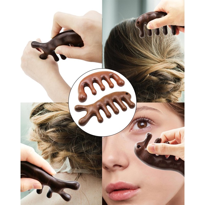 - Multi-purpose Wood Wide Tooth Comb: The wooden scalp massager comb works well for head, neck, shoulders, hands, arms, calves, thighs and face massages, reducing your stress and sleepy.