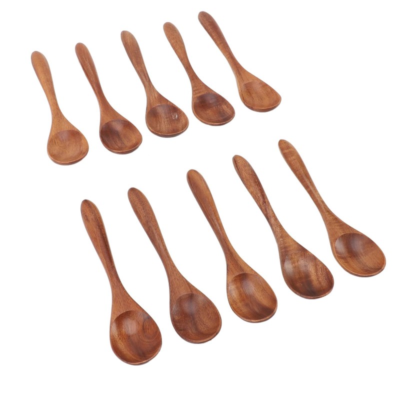 Wooden Spoons Handmade Wood Serving Spoons Comfortable Grip Coffee Spoons for Mixing Stirring Premium Wood Material 13 x 3cm 10pcs