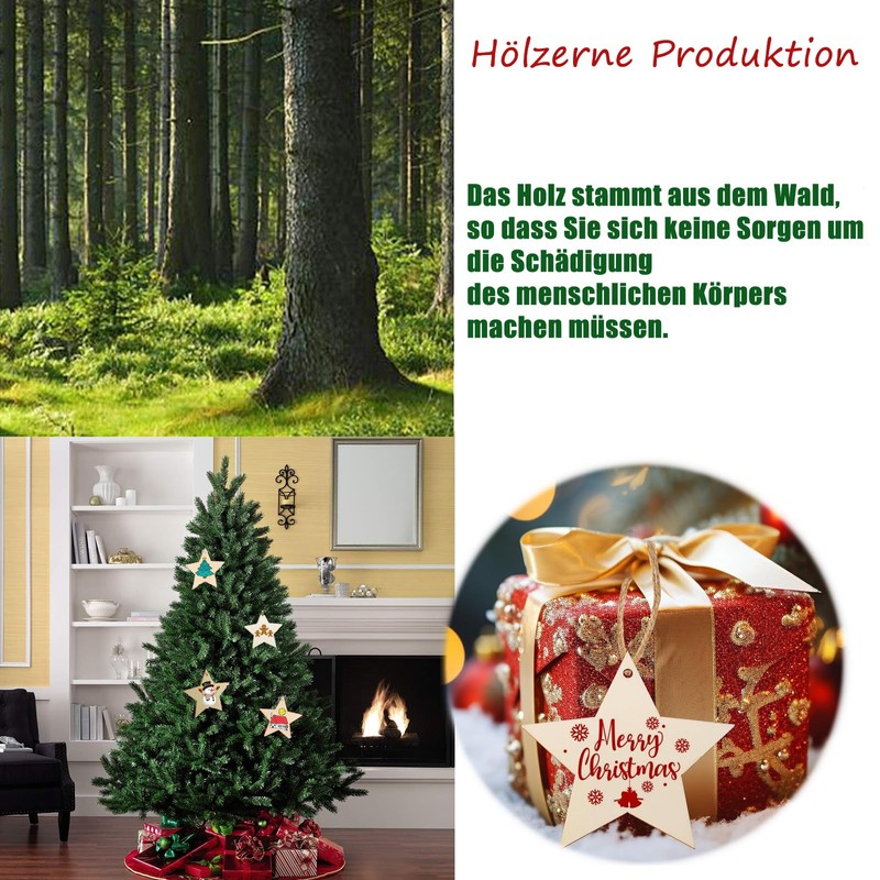 - Thanks to the pre-drilled holes, the wooden Christmas decoration is convenient to hang, each star pendant comes with a string.