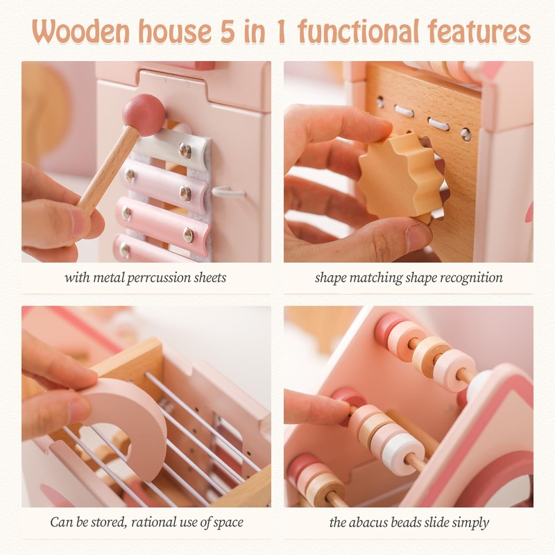 WOODEN TEETHER Wooden Motor Skills Cube, 5-in-1 Montessori Toy Baby, Motor Skills Toy for Baby, Toy Motor Skills Bow, Wooden Toy from 1 Year, Activity Centre Baby, Gifts for Girls