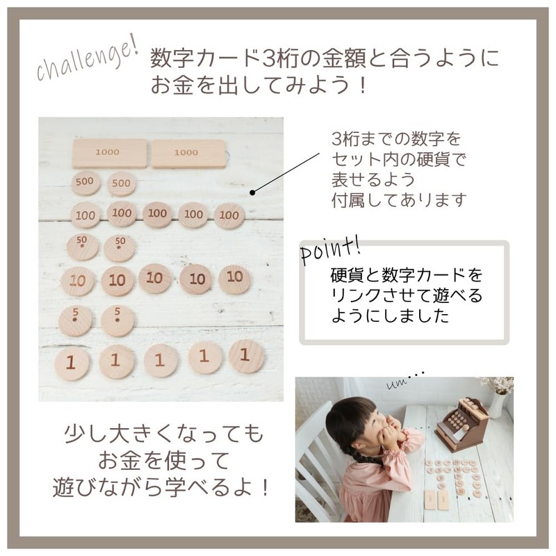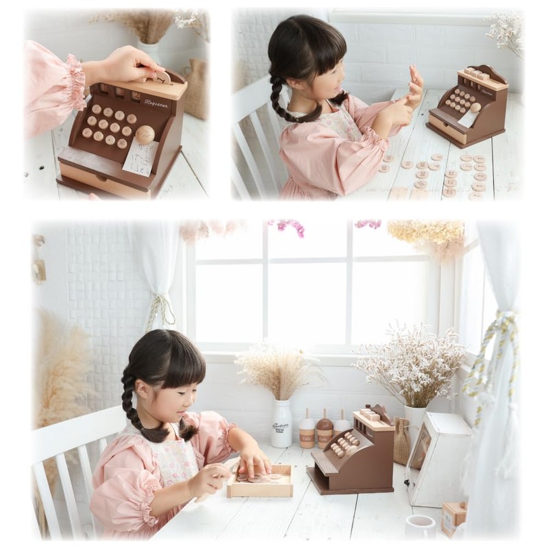 Wooden Toy Register, Antique Style Drawer, Money Set, Number Card Learning Up to 3 Digits with Magnets, Learning Money, Education, Coin Dropping