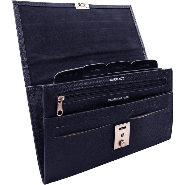 - [ RFID Blocking Travel Document Holder ] - Faux leather RFID Blocking wallet and document organizer keeps all your documents and bank cards safe while you commute in airports and public transportation.