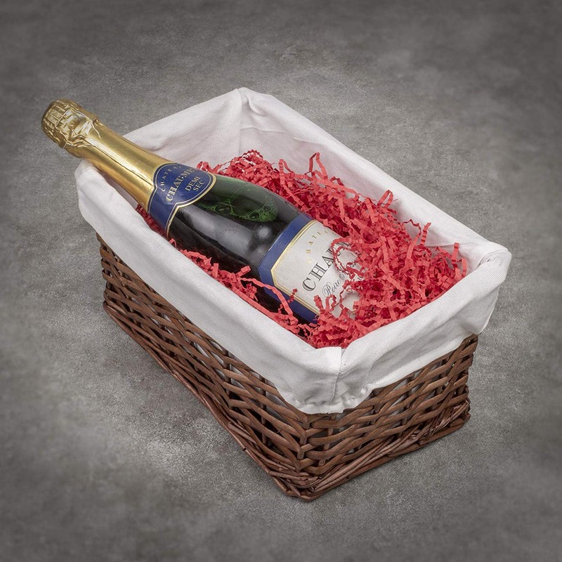 Woodluv Brown Wicker Storage Basket W/Off White Cloth Lining Xmas Hamper - Small