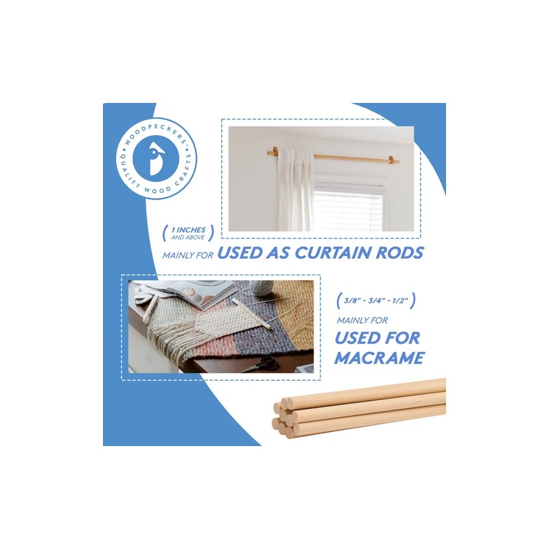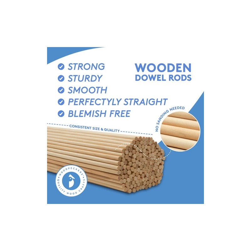 Woodpeckers Wooden Dowel Rods 3/16 x 36 inch, Unfinished Sticks Crafts & DIY | Woodpeckers - Pack of 100, Natural