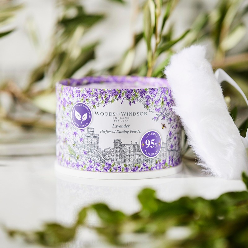 - A Dusting Powder with our signature classic Lavender fragrance, combining aromatic notes of patchouli, musk and chamomile. Includes a soft body puff. The powder has a plant-based formulation containing 95% naturally derived ingredients and is Vegan & Cruelty-free.