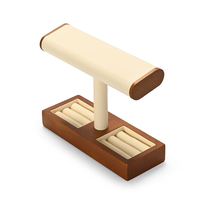 Woodten Solid Wood T-Bar Showcase, 2 in1 Watch&Ring Display Stand Jewelry Display Organizer Holder for Watch Bracelet Ring (Beige)