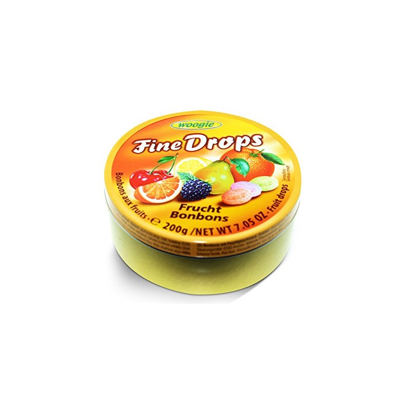 Woogie, German Fine Drops Sanded Mix fruits Candy Tin 200gr (Fruchtemixgeschmack) (5 pcs)