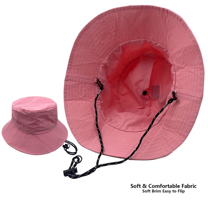 woogwin Waterproof Bucket Rain Hat with Chin Strap Quick Dry Packable Boonie Sun Hat Safari Hat UV Protection(Pink1)