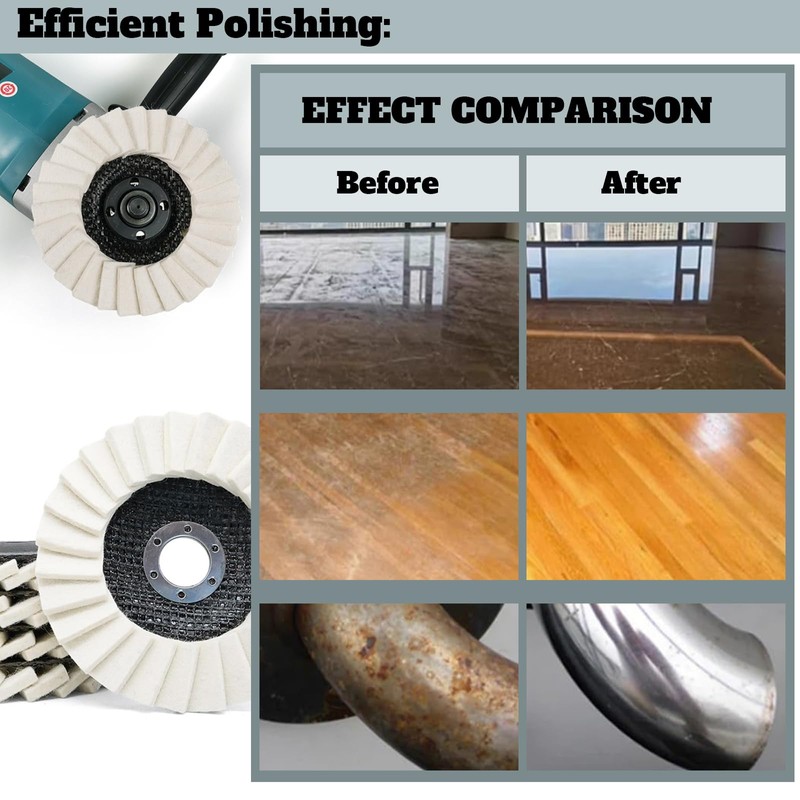- 【Wool Felt Flap Discs Polishing Wheel - Widely Applicable】This polishing pad has a wide range of applications, it can be used for polishing and grinding of many materials, such as stainless steel, copper, aluminum and other metals, and glass, acrylic board, ceramic tile, ceramics, marble and other non-metal fine polishing.