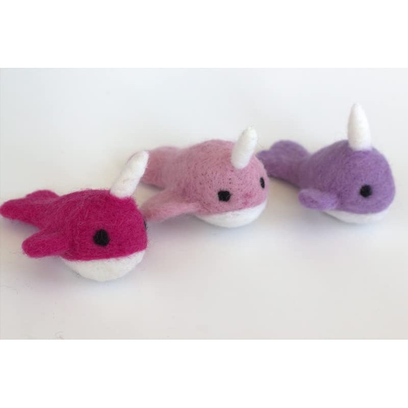 Wool Felt Narwhals- SET OF 3- Dark Pink- Baby Pink- Lavender- Unicorn of the Sea- Felt Whale Ocean Shapes- 100% Wool Felt- Approx. 3.5"x3"