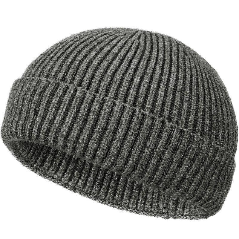 Wool Fisherman Beanies for Men Women, Short Knit Fall Winter Warm Beanie, Watch Cap, Cuffed Trawler Hats, Skull Caps Dark Grey