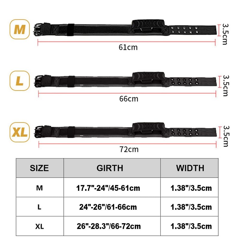XL dog collar: length: 66-72 cm / 26-28.3 inches, adjustable. Width: 3.5 cm. Weight: 0.12kg