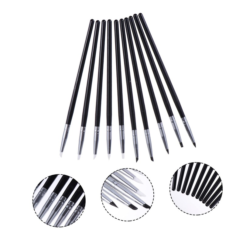 WOONEKY 10pcs Nail Art Sculpture Pens Manicure Kit Embossing Brush Professional Nail Art Tools for Diy