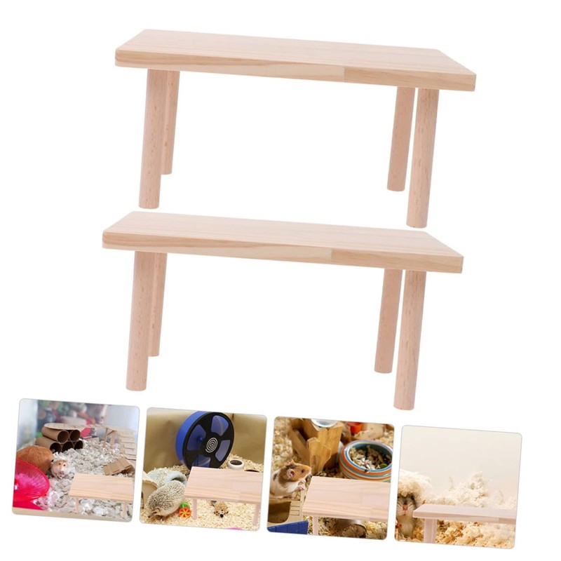 WOONEKY 2Pcs Wooden Hamster Platform Creative Playing Platforms for Hamster Cage Anti-biting Design for Pets Hedgehogs Hamsters