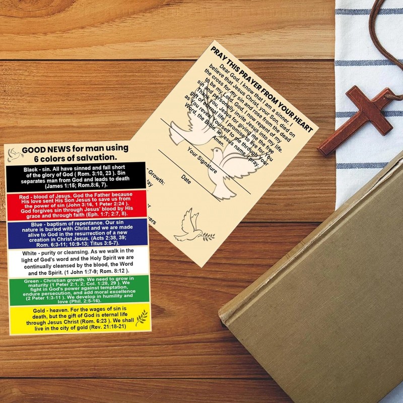 Plan of Salvation Card Prayer Cards measure approximately 4.7 x 3.5 inches, and Card Plan of Salvation Cards compact size makes them easy to carry and can be stored in your pocket, Bible or purse, making them a convenient way to carry around the strength of faith that spiritual guidance needs.