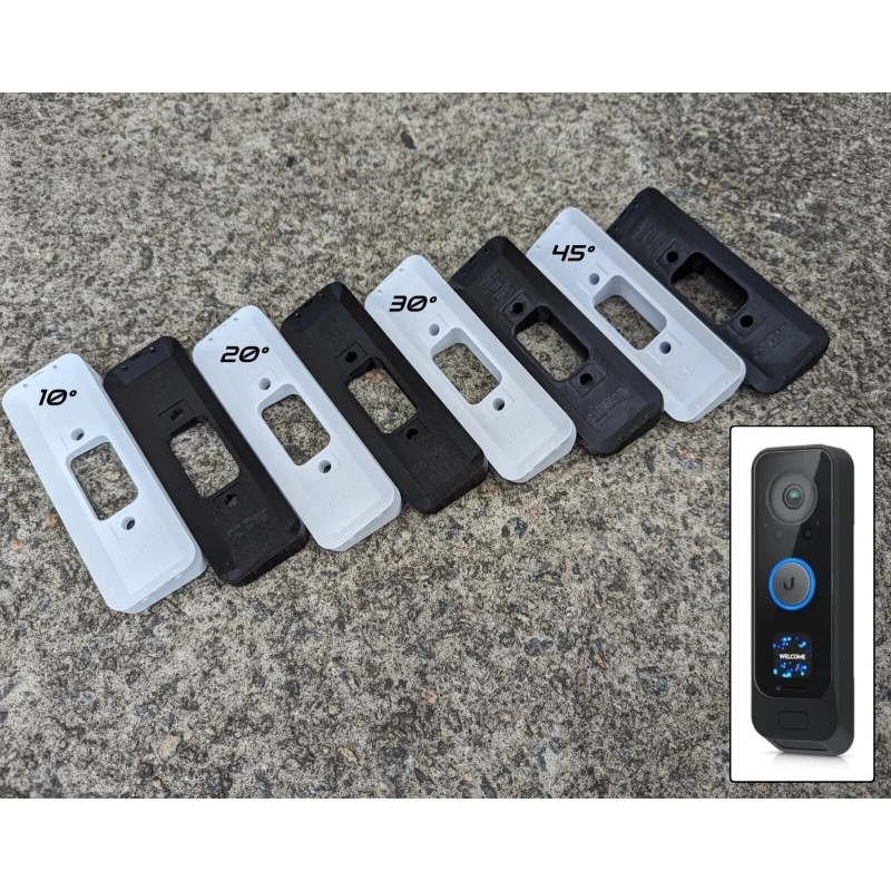 This is a 3D Printed 10, 20, 30, or 45 degree wedge mount for the UniFi G4 Doorbell Pro from Ubiquiti