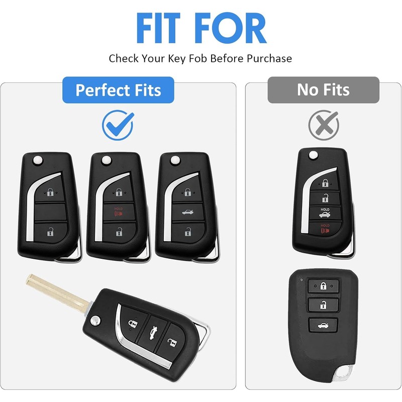 🚗Compatible Models🚗:Compatible with Toyota 4Runner,Avalon,Camry (2018-up),Camry LE(2018-2019),Camry SE (2018-2020),Corolla (2020),Corolla iM (2017-2019),Corolla LE (2020),Corolla SE,Sequoia,Sienna,Tacoma,Tundra,Yaris,etc... 3 Button keyless entry remote control ,Smart key like a glove,prevent your car key from breakage and scratches.And also make your car key fob stand out,stay nice and safe,Really wise investment for protecting an expensive electronic key.