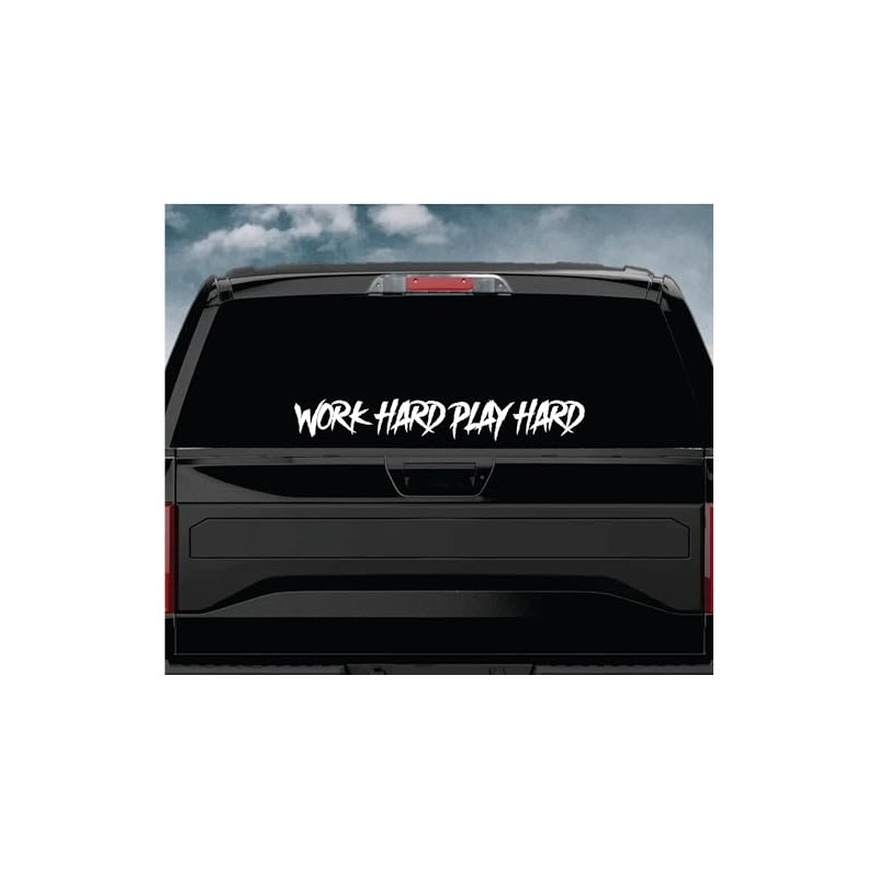 Work Hard Play Hard Car Decal Bumper Sticker Vinyl Truck Window Mirror JDM Windshield Banner Rearview Quote Men Girls Trendy Racing Street Auto Japanese Speed Sadboyz Drift (22" x 3")