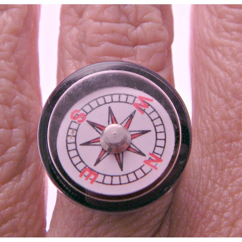 Working Which Way Do We Go Compass Silverplated Adjustable Ring Lost Direction Travel