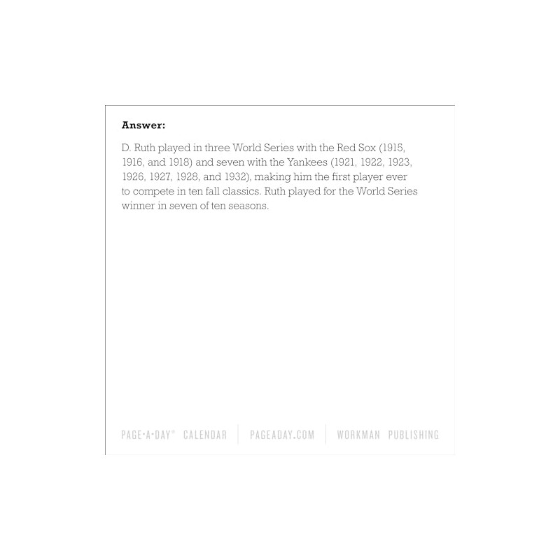 Workman Calendars A Year of Baseball Trivia Page-A-Day? Calendar 2025: Immortal Records, Team History & Hall of Famers
