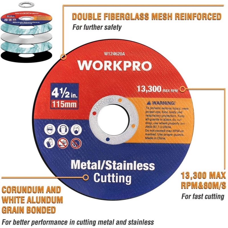 WORKPRO 20-Pack 4-1/2 x 7/8-Inch Cut-Off Wheels Aluminum Oxide Ultra Fine Bonded