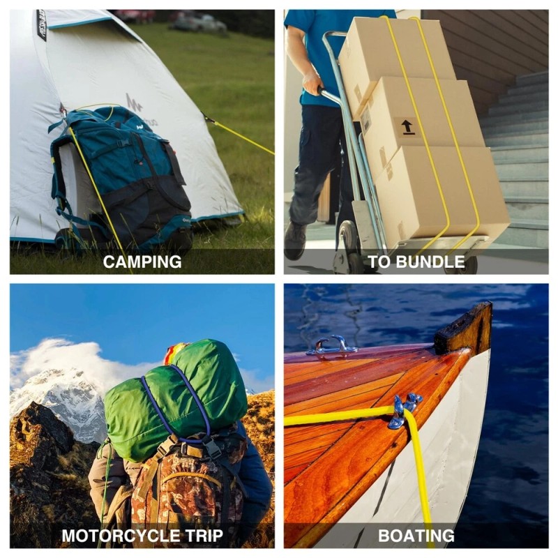 Widely used in all kinds of occasions: garbage bin, tents, tarps, clotheslines, gardening, camping luggage racks, boats and more outdoor activities.